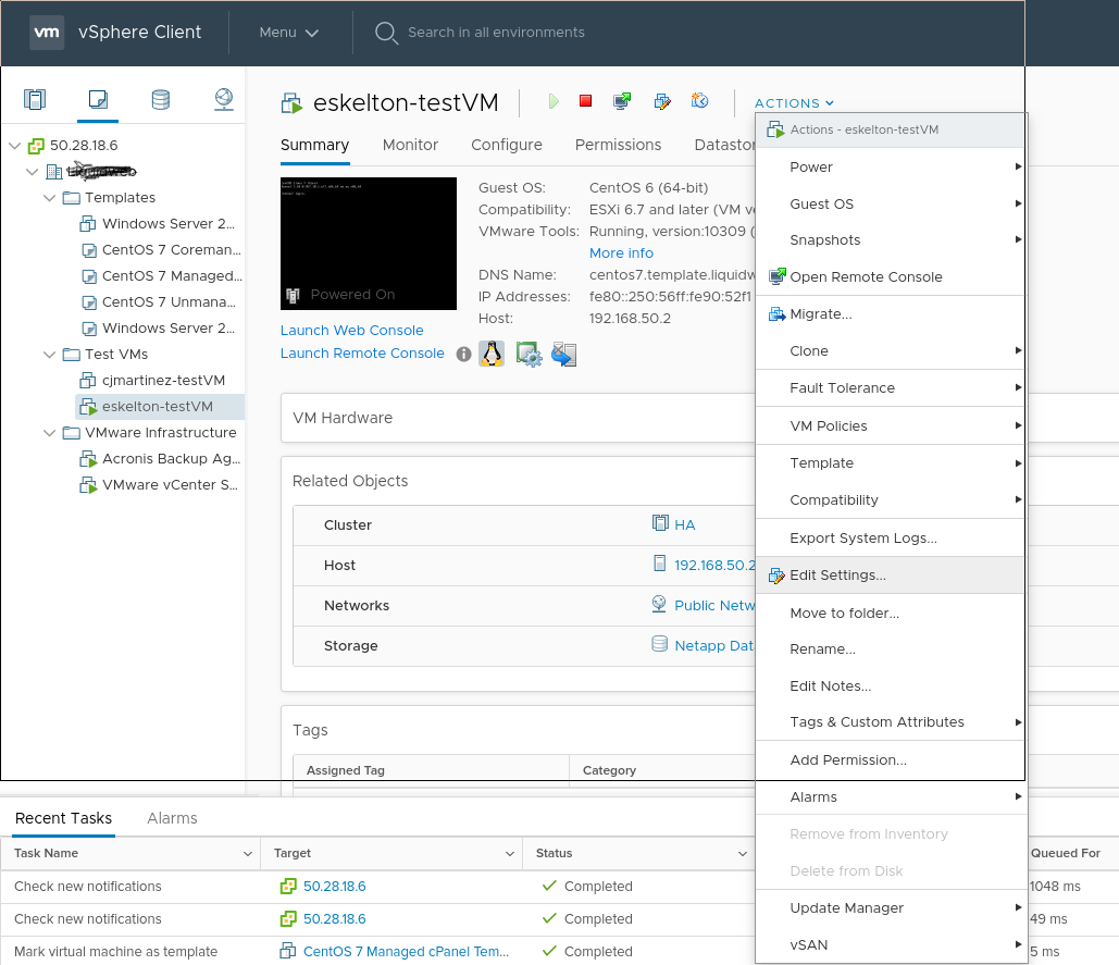 1. Open the Edit Settings page on the VM you want to add a disk to