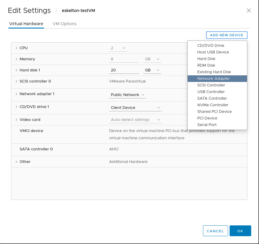 1. Open the Edit Settings page on the VM you want to add a NIC to