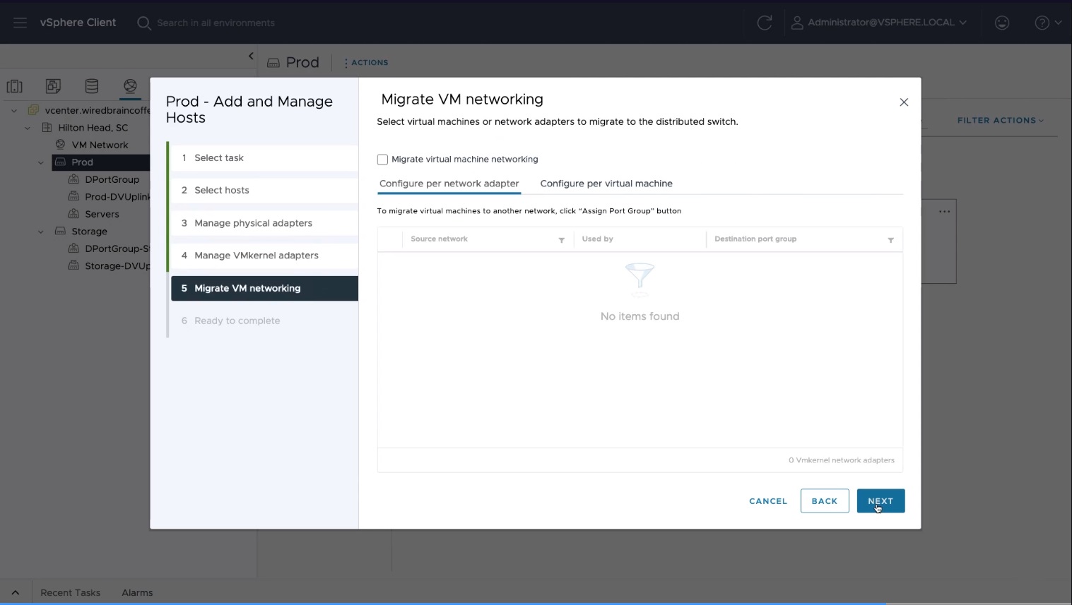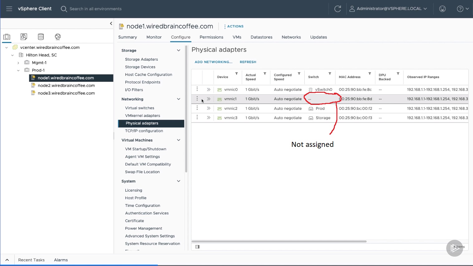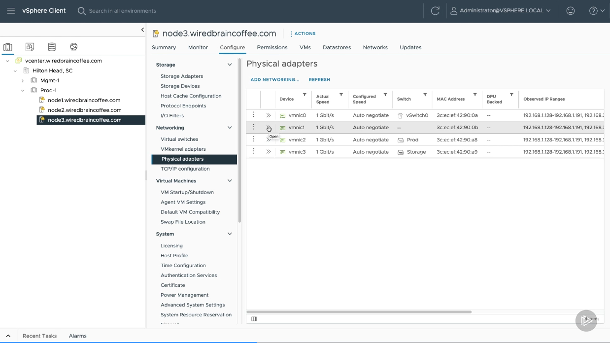 5. Click on "Configure" > Networking > Physical Adapters