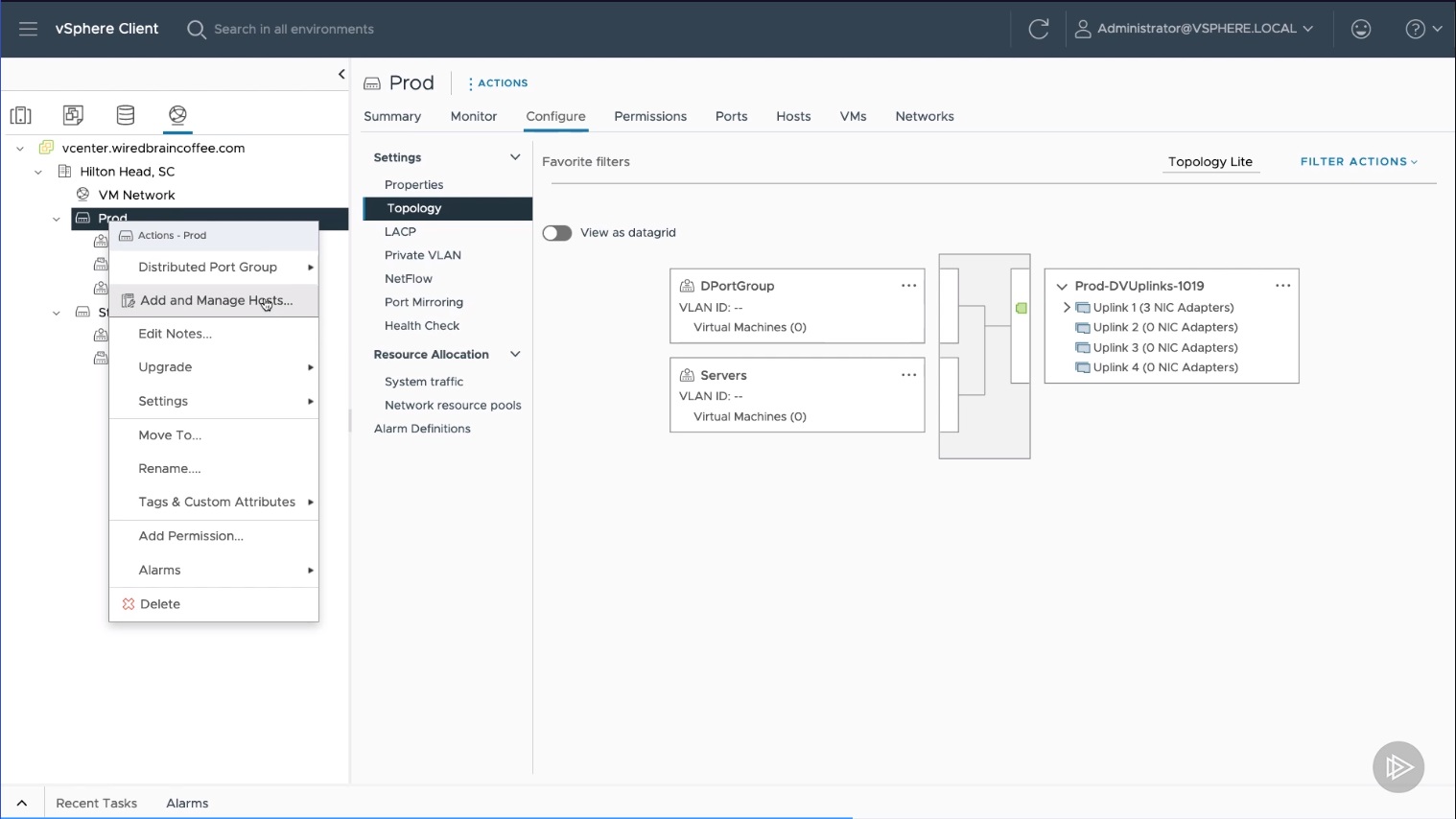 7. Right click on the Switch (in this case it's called Prod)