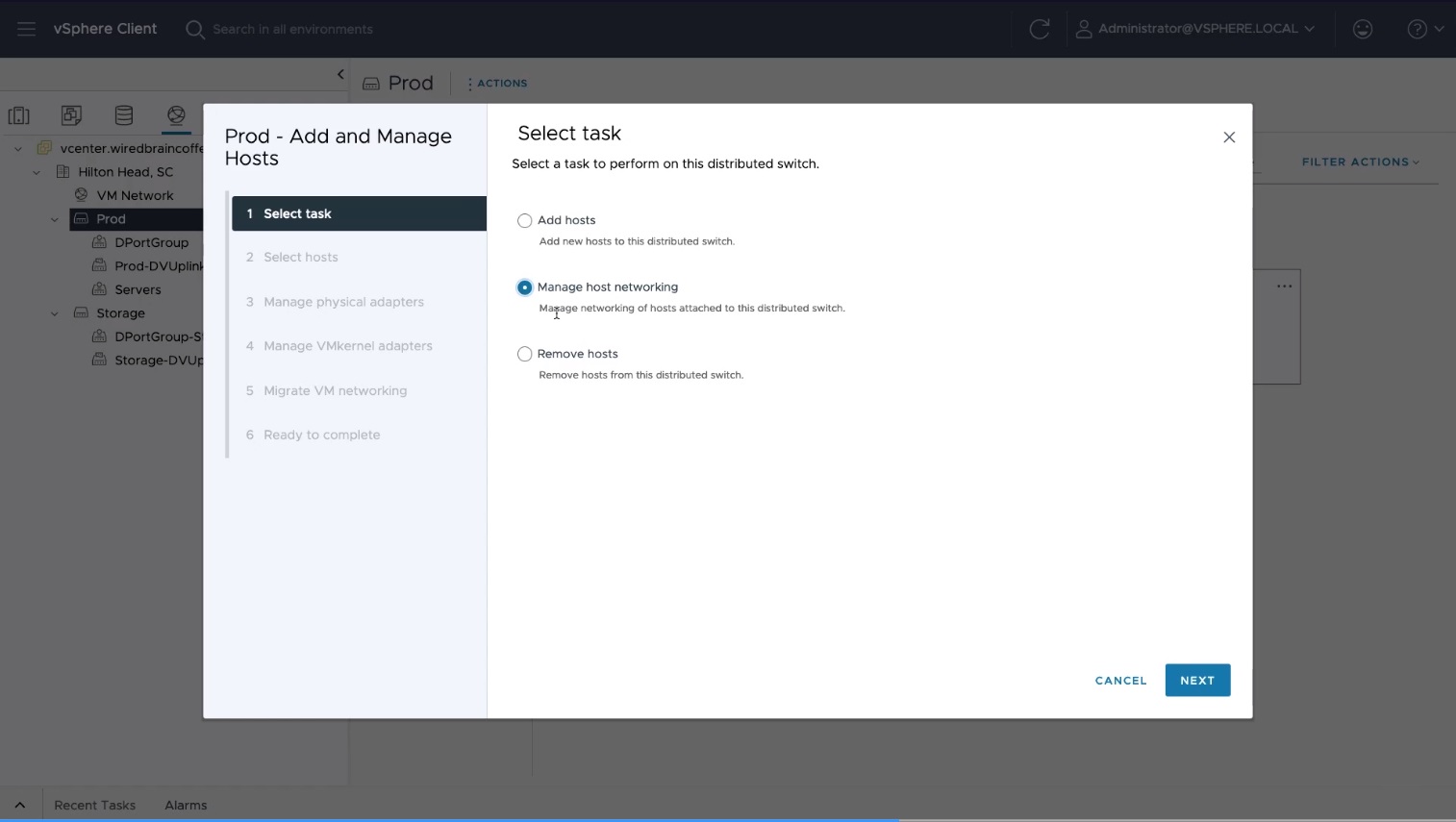 1. Go to vSphere > Network