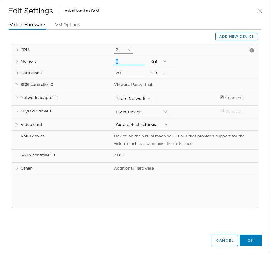 3. Start the VM back up and confirm the new values show up