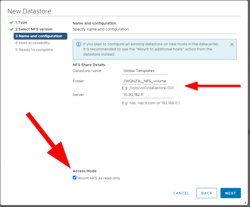 3. Then, ensure that the Mount NFS as read-only option is selected,