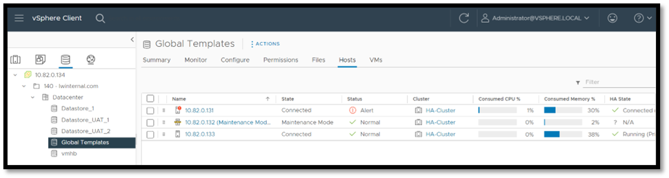 1. Identify which Global Templates Datastore information will be used to connect (match the DC the cluster is in),
