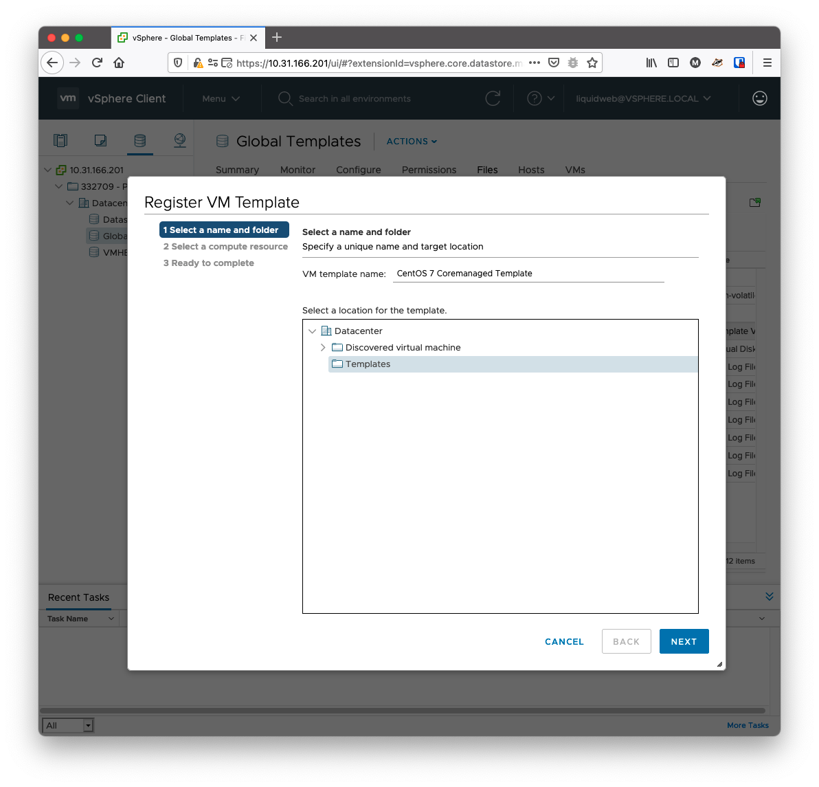Most customers will rely on us to kick and build VMs for them. As such we need to mount our Global Template Datastore to their cluster. Once their cluster has access to the Global Templates Datastore we can register a VM template to their cluster and then use it to deploy a VM. This article will detail how to attach the Global Template Datastore as well as registering a Template.