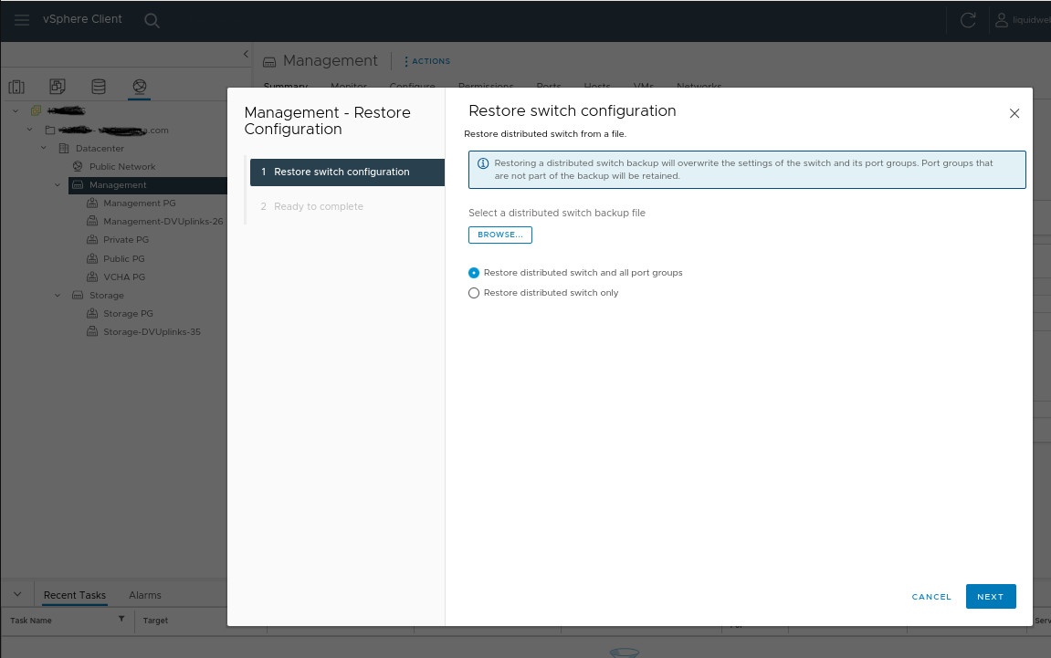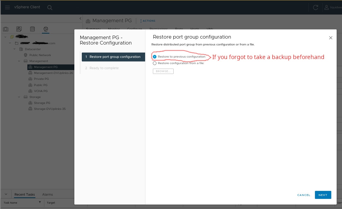So you can restore any Port Group or Uplinks this way to a previous config.