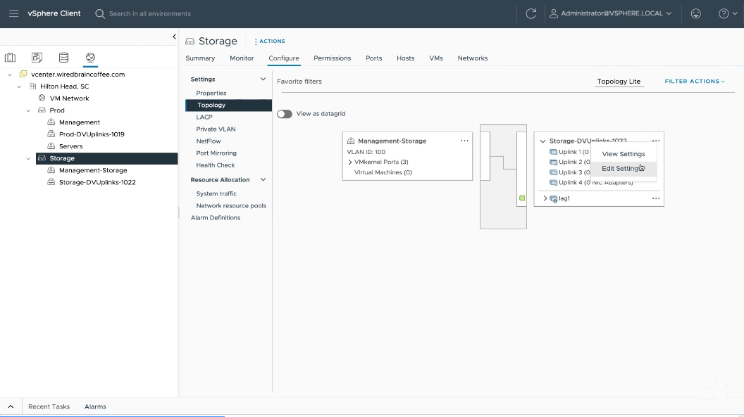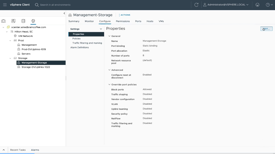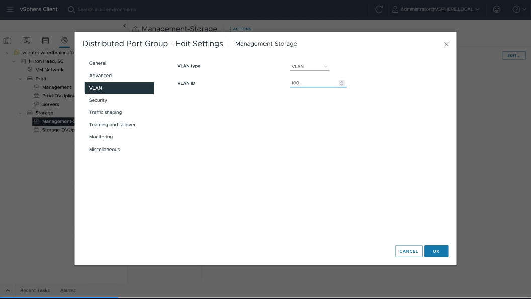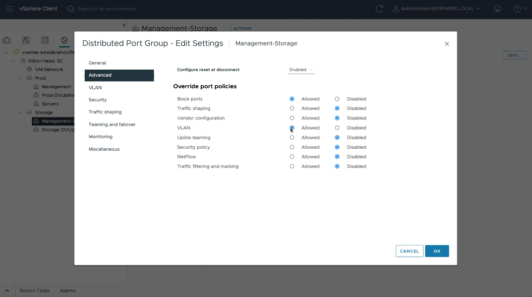 Once this is configured at the Port Group level, you also wanna configure VLANs, on the DV switch uplinks.