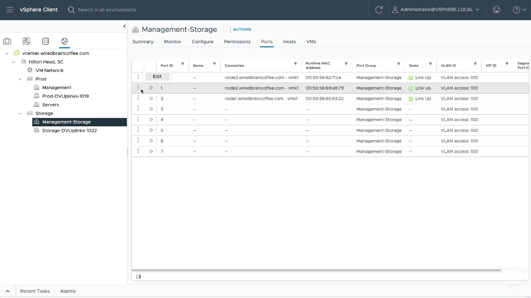3. Select a Port Group (We selected the "Management-Storage" Switch)