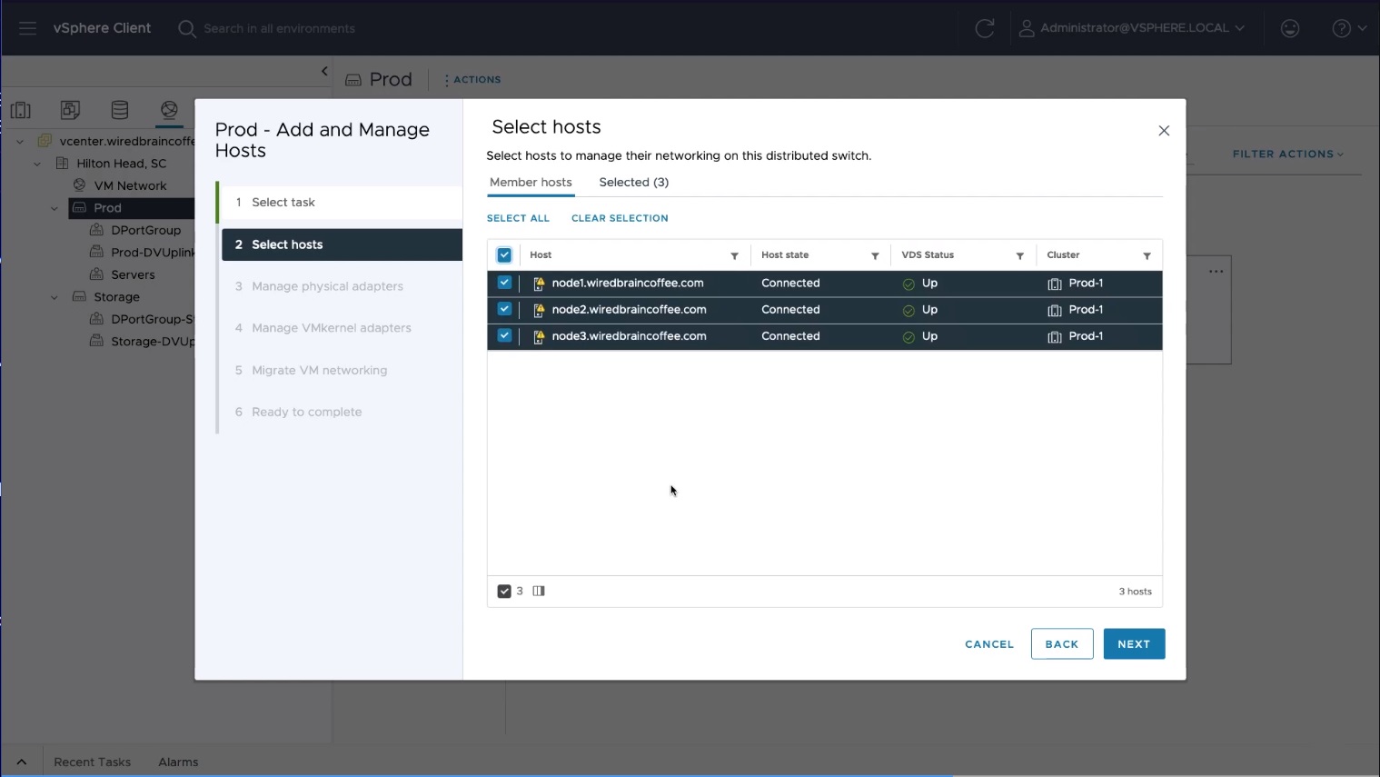 4. Go to vSphere > Hosts and Clusters > Select a Group (We selected the Prod-1 group) > Select a VM
