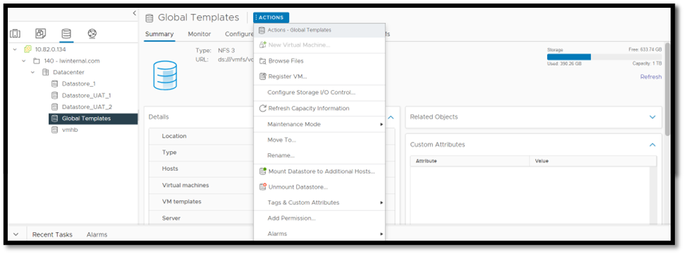 Most customers will rely on us to kick and build VMs for them. As such we need to mount our Global Template Datastore to their cluster. Once their cluster has access to the Global Templates Datastore we can register a VM template to their cluster and then use it to deploy a VM. This article will detail how to attach the Global Template Datastore as well as registering a Template.